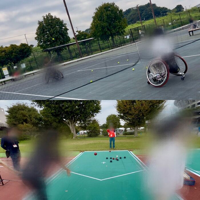 数々のブースの中から、利用者さんに興味のあるものを選んでいただき、「ボッチャ体験会」と「車いすテニス体験」を行いました🎾